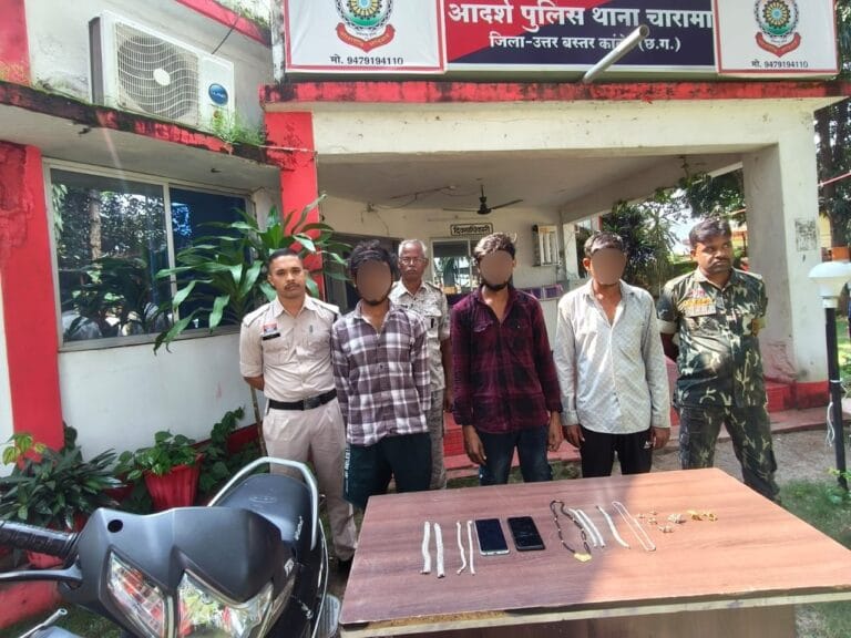 चारामा थाना पुलिस ने त्वरित कार्यवाही करते हुए चोरी के मामले में शामिल तीन आरोपियों और एक नाबालिग को गिरफ्तार कर लिया है। पुलिस ने आरोपियों से चोरी किए गए सोना-चांदी के जेवरात, घटना में प्रयुक्त लोहे का संबल और एक्टिवा स्कूटी बरामद किए हैं।