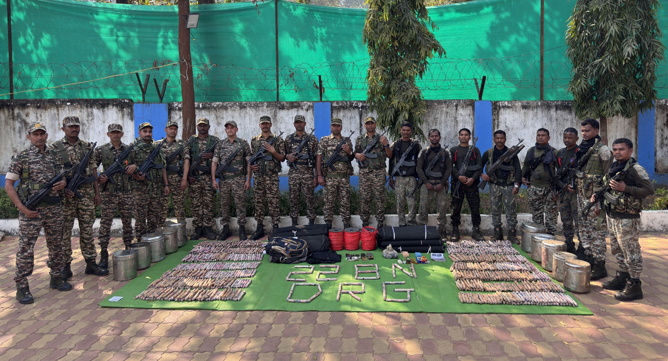 इसी अभियान के दौरान डीआरजी बीजापुर, थाना मद्देड़ पुलिस और सीआरपीएफ की 22वीं बटालियन की संयुक्त टीम ने नीलमड़गु से बंदेपारा के बीच अलग-अलग स्थानों पर जमीन में गड्ढे खोदकर छुपाए गए स्टील कंटेनर और प्लास्टिक बाल्टियों से भारी मात्रा में विस्फोटक सामग्री बरामद की।