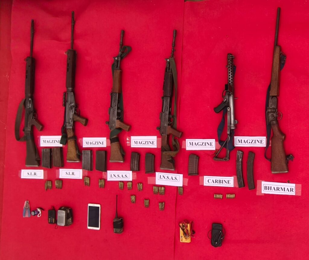 आत्मसमर्पण के दौरान नक्सलियों ने पुलिस के समक्ष 05 ऑटोमेटिक हथियार, एसएलआर रायफल, कार्बाइन, भरमार बंदूक, मैगजीन, सैकड़ों कारतूस, वॉकी-टॉकी सेट और अन्य नक्सली सामग्री जमा कराई। पुलिस अधिकारियों का कहना है कि यह हथियार लंबे समय से सुरक्षा बलों और ग्रामीणों के लिए गंभीर खतरा बने हुए थे।