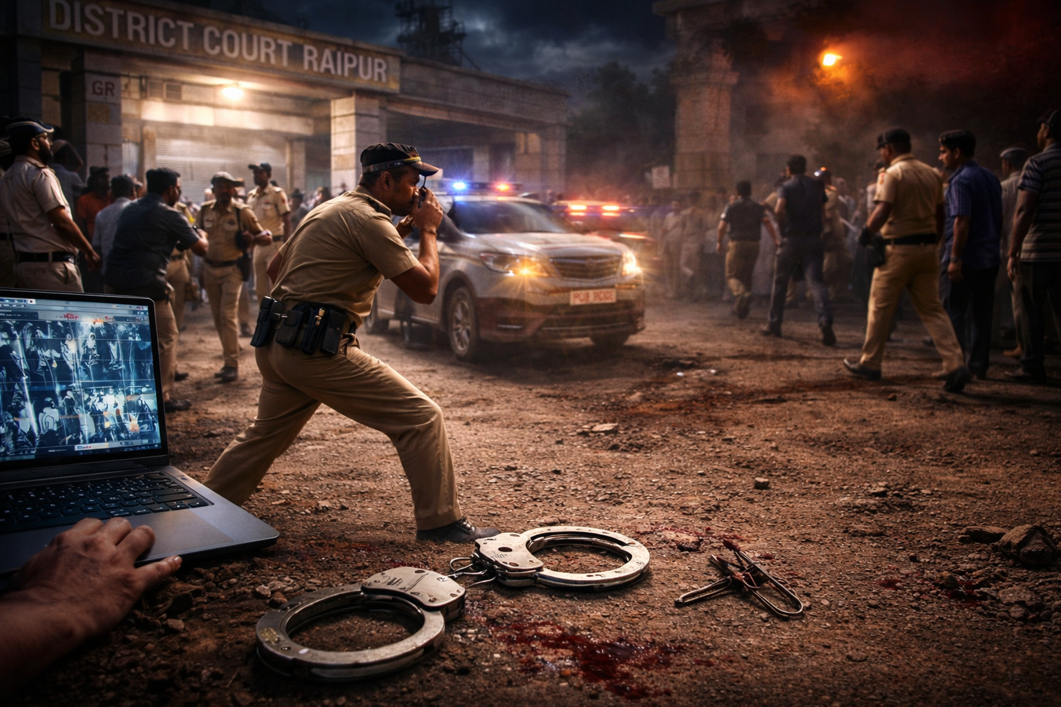 रायपुर के सिविल लाइन थाना क्षेत्र में स्थित जिला न्यायालय परिसर से पेशी के बाद जेल ले जाए जा रहे दो आरोपी पुलिसकर्मियों को चकमा देकर फरार हो गए। घटना के बाद पुलिस विभाग में सतर्कता बढ़ा दी गई है। दोनों आरोपियों के खिलाफ पहले से हत्या के प्रयास, मारपीट एवं अन्य आपराधिक प्रकरण दर्ज बताए गए हैं।