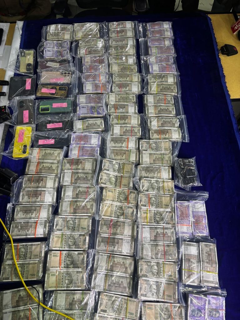 रायपुर पुलिस द्वारा ऑनलाइन सट्टा मामले में जब्त नकदी, मोबाइल और लैपटॉप